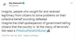 I think that at this stage and depth of fragility of the Nigeria-State, Privacy has to yield ground to our Right-to-know as citizens, the state of health of @MBuhari.