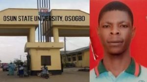 Victor Oke, a final year student of the Department of Political Science at the Osun State University, was allegedly attacked with matchets, shot and set ablaze for refusing to join a cult group.