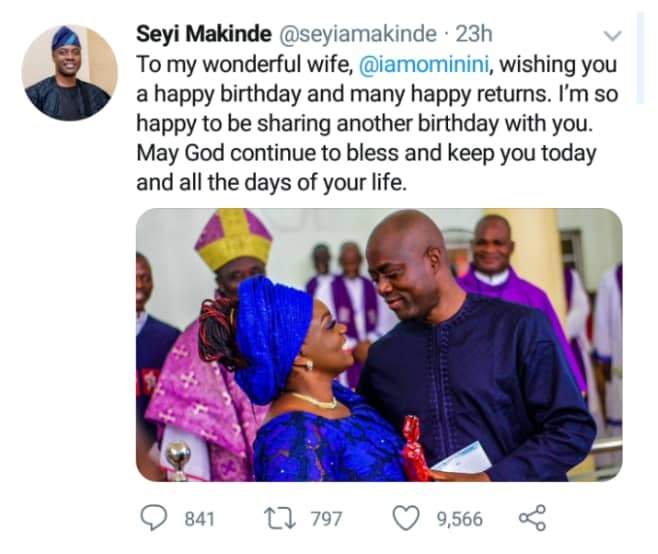 The Governor of Oyo state, Oluseyi Abiodun Makinde has taken to social media to celebrate his wife, Ominini Makinde on her birthday.