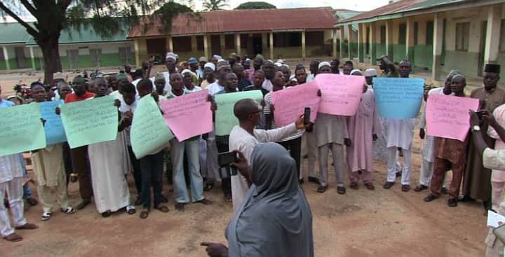 The protesters carried placards with inscriptions such as, “Open our schools for students, ”children are hawking around the streets rather than schooling, ”teachers are suffering, ”out of school pupils are in football viewing centres, markets and parties.”