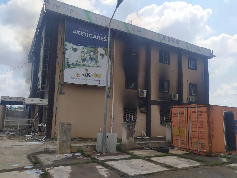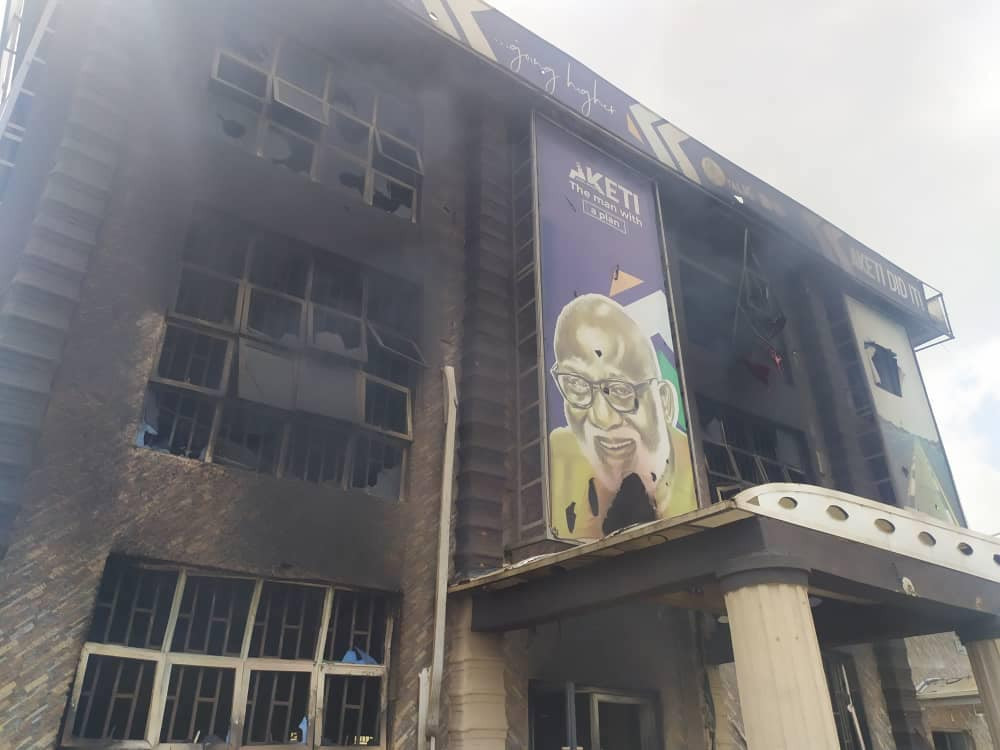 An angry mob on Thursday afternoon, October 22, set ablaze the campaign office of Governor of Ondo State, Rotimi Akeredolu in Akure, the state capital.