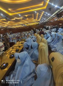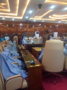 GIOTV saw that hundreds of the girls were dressed in light blue hijabs sitting at the state Government House office in Gusau.