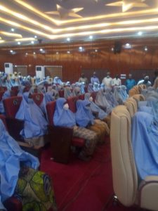 GIOTV saw that hundreds of the girls were dressed in light blue hijabs sitting at the state Government House office in Gusau.