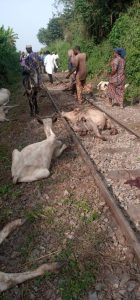 “We just heard a loud noise and the animals were moving not far from the rail line. Many of them were crushed. About 47 animals worth N10m were lost.” he lamented.