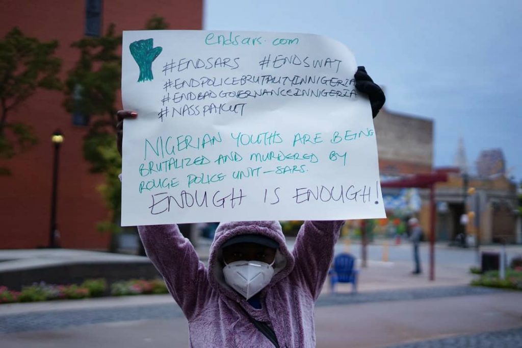 Nigerians residing in Rome, Texas, Ohio, and Toronto have also staged #EndSARS protests in their various localities, demanding an end to police brutality in Nigeria as well as a total reform of the police force.