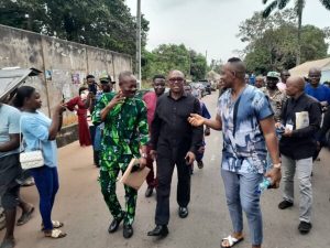 Obi, who is one of the leading presidential candidates in the elections, cast his vote around 11:43 am amid cheers from his supporters.
