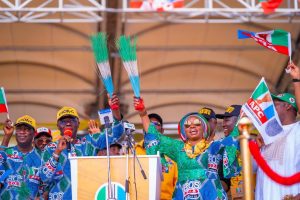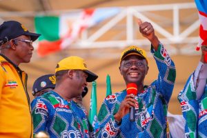 Lagos State governor, Babajide Sanwo-Olu, on Saturday, began the campaign for his re-election bid at the Mobolaji Johnson Arena, Onikan.
