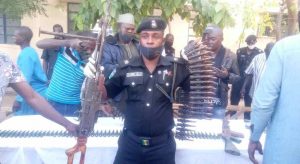 The police which recovered two General Purpose Machine Guns (GPMGs), one LAR rifle, 179 Anti-Aircraft (AA) ammunition, and about N3.4 million CFA Franc from the suspects, also paraded Murtala Haruna, 20, described as a nephew of the arms dealer; Ibrahim Dabo, 19, from Natsinta village, Kandamau, Maradi, Niger Republic; Sambo Muhammadu, 22, and Jibir Adamu, 20.