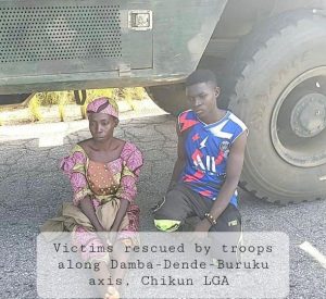 The troops mobilized to the location and made contact with bandits at Rafin Kaura. The bandits fled from the advancing troops, who then rescued two victims who had been kidnapped in transit: