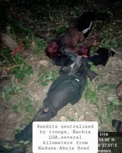 Troops of the Nigerian Army Operation Whirl Punch have neutralized armed bandits in a location several kilometers off the Kaduna-Abuja Road and rescued two kidnapped victims in Chikun Local Government Area of the state.