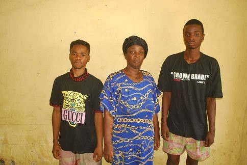 46-year-old Stella Idris pictured above and her 16-year-old son, Miracle and one other, 18-year-old Ebube Ebuka, have been arrested by men of the Niger state police command for allegedly abducting and attempting to sell a four-year-old boy in Suleja local government area of the state.