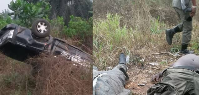 It was a tragic scene along Ogoni/Akwa Ibom road after some policemen lost their lives during a hot chase in a bid to arrest a car.