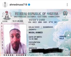 Nigerians have taken to the comment section of football star, Ahmed Musa, to react in disbelief after he shared a photo of his PVC with his year of birth reading 14-10-1992.