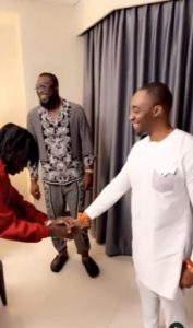 A video has captured the moment Afrobeats star, Rema bowed to greet the crown prince of Benin Kingdom, Prince Ezelekhae Ewuare.