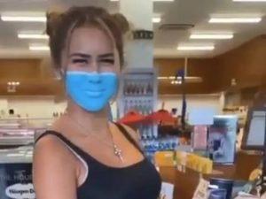 In the video, Se and Lin tried to enter the supermarket but were stopped by security guards because she did not wear a mask.