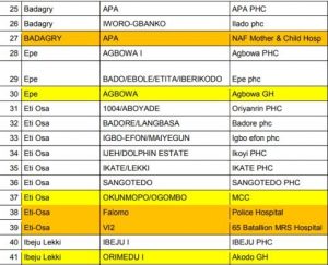 The Lagos State Government has released a list of 88 centres where residents of the state can take the AstraZeneca COVID19 vaccine.