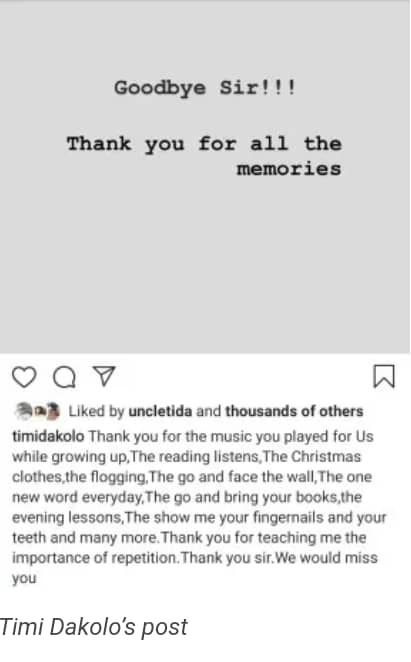 The popular singer who also recently celebrated his Valentine’s day in style with his wife expressed his gratitude to his late father in his goodbye post on Instagram.