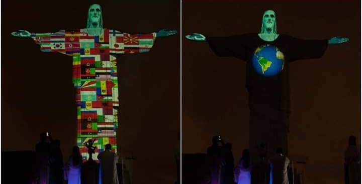 Christ the Redeemer statue in Rio de Janeiro, Brazil, has been lit up with the flags of countries currently battling with the deadly coronavirus (COVID-19).