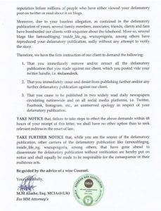 “I’m neither in business talk with you nor entered any of contract of service with you” she insists.