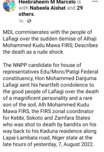 The victim was said to be on the way back to his Kaduna residence from Lafiaji, Kwara State when he was ambushed by the gunmen.
