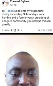 He was said to have been rushed to the Federal Medical Centre (FMC), Yenagoa before he was referred to the University of Port Harcourt Teaching Hospital, Rivers State where he eventually died.