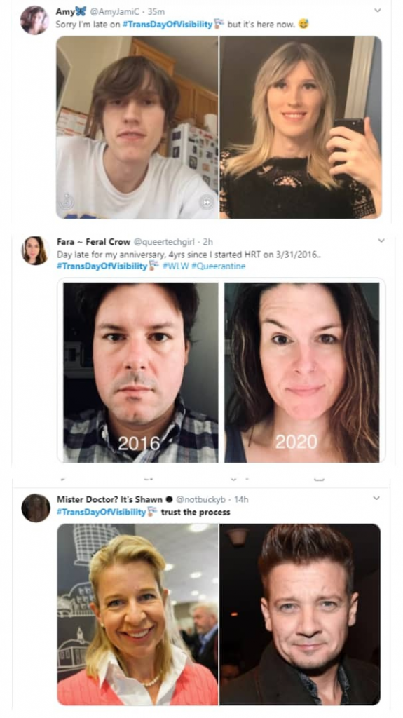 On social media, Twitter particularly, some transgender men and women took to the platform to share their before and after photos using the hashtag #TransDayOfVisibility.