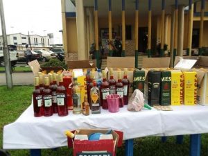 “Exhibits recovered include assorted wines, spirits and several alcoholic beverages including empty bottles waiting to be filled with the poisonous liquid/substances