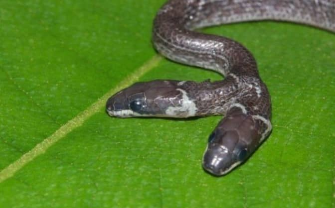 The snake is 14cm long and has two fully formed heads, meaning it has four working eyes and two flickering tongues.