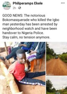 Facebook user Philieramps Ekele, who confirmed the development on Friday, September 2, said the suspects were arrested by Neighbourhood Watch and handed over to the police for further investigation.