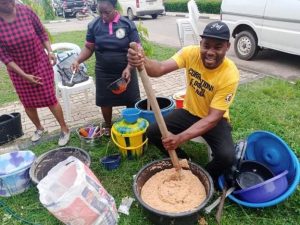 The students of the institution watched the workers who swept the floor from the Vice-Chancellor’s office to the school gate. They later served and ate the bean cake to bade the VC farewell.
