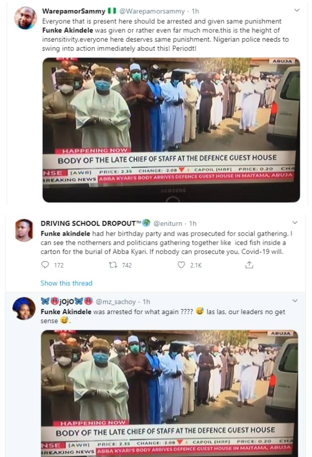 This came after Nigerian Twitter users pointed out that social distancing was not observed at the burial ceremony of the late Chief of Staff.