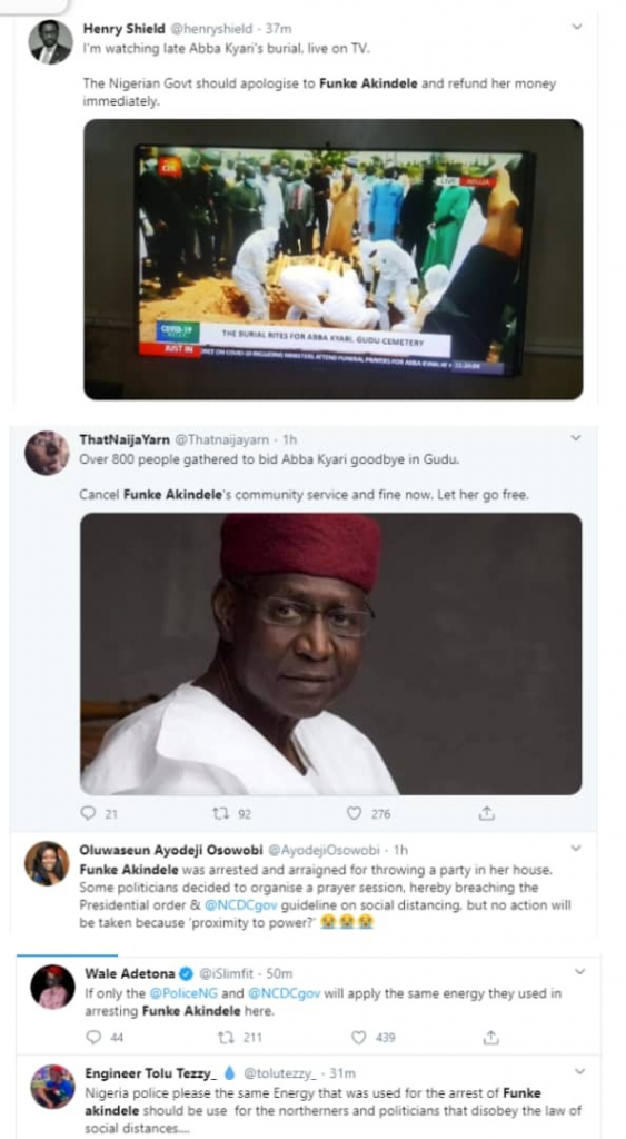 Funke Akindele made it to top spot of the ‘Nigerian Twitter trends’, just after President Buhari’s Chief of Staff, Abba Kyari was buried yesterday after dying from Coronavirus.